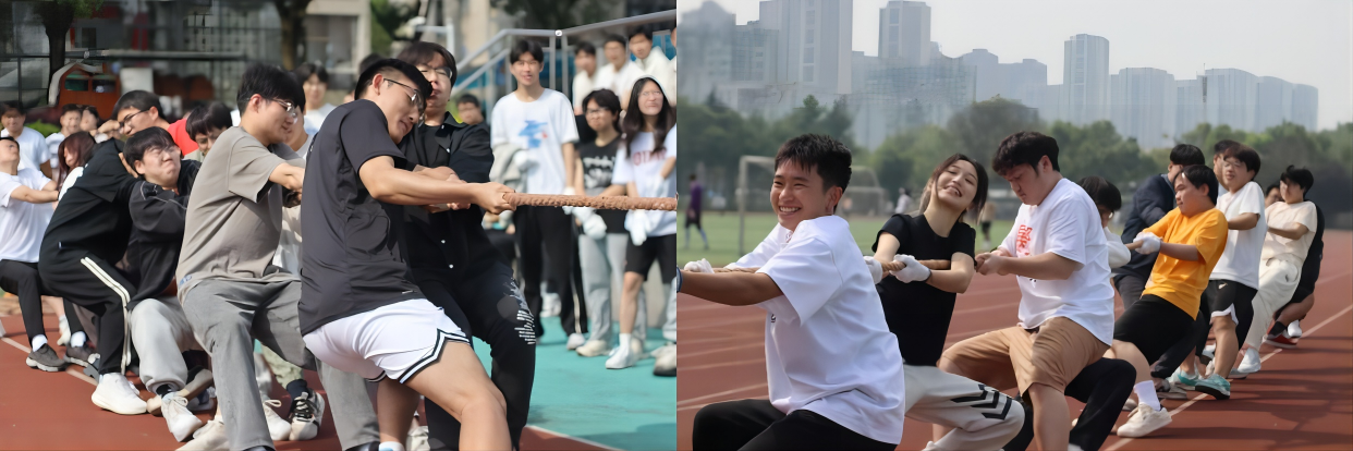 上午,阳光照耀下的“男女混合拔河比赛”率先点燃了现场激情。各班级队伍摩拳擦掌,斗志昂扬。随着裁判一声哨响,双方队员紧握绳索,全力以赴。观众们纷纷起立,为各自支持的班级呐喊助威,加油声此起彼伏。经过几轮激烈的角逐,实力与团队协作并重的班级脱颖而出,赢得了现场观众的热烈掌声。