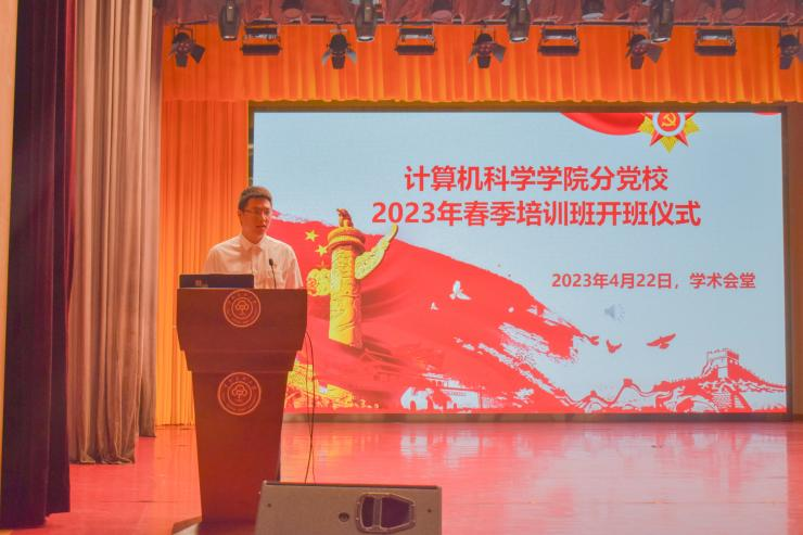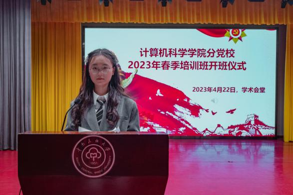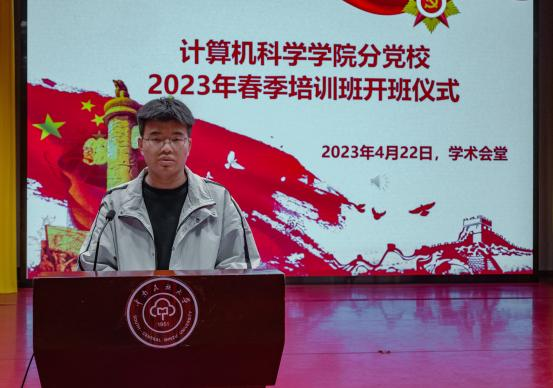 致词完毕后,由入党积极分子代表王毅同学和发展对象代表王晓雨同学进行发言,两位同学对学院的培养致以由衷谢意,并代表培训班全体学员做出铿锵有力的承诺,坚定理想信念,不断向党组织靠拢。