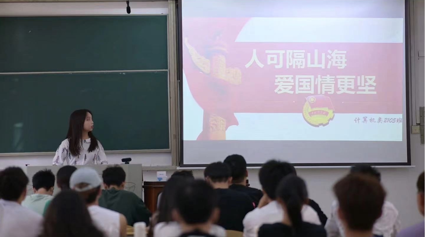 “爱国”主题班团会召开时间恰逢国庆前夕,各班同学通过班团会相互学习交流,共同表达对祖国的真挚祝福。各班班导师也参与其中,为学生提供思想引领。计算机类2104班以党的二十大精神、共青团成立100周年两个方面为主,以主讲人介绍、邀请共青团员代表发言、班级同学发表对祖国祝愿三种方式让班级同学切身参与其中,深切感受爱国教育的魅力。计算机类2105班结合当下时代背景,通过观看钟南山院士、医护人员、志愿者等抗疫一线人员的故事,同学们感受到了疫情期间全国人民众志成城、守望相助的精神。自动化2103班通过讲述中国共产党的发展历史,观看《觉醒年代》相关视频,再次激发学生的爱国热情。