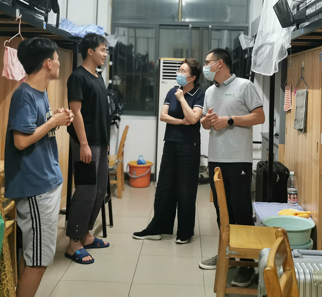 走访过程中,学院领导和老师与同学们展开了亲切交流,详细了解学生的报到过程、注册情况及到校后的感受,鼓励大家积极适应新环境、融入新集体,遇到任何困难随时联系老师,学院将在第一时间予以帮助解决。院长覃俊简单介绍了学院情况和专业情况,并希望同学们能养成良好的生活和学习习惯,在大学阶段更进一步。学院党委书记黎大有结合当前疫情防控形势,对同学们严格遵守疫情防控规定、做好自我管理和个人防护提出了具体要求,并倡议新同学们要养成良好的生活卫生习惯、维持宿舍干净整洁状态。