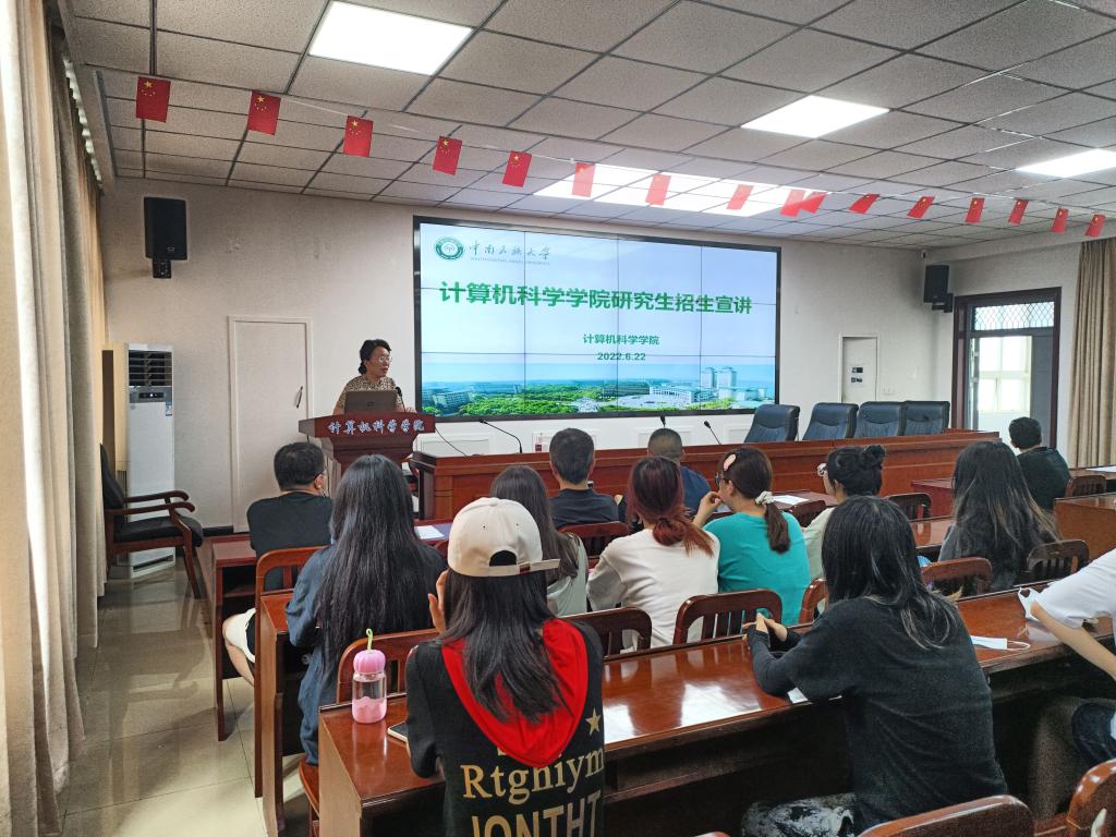 宣讲会一共四项议程,首先由覃俊院长作考研动员发言,她指出应该要给自己合理定位,提高考研胜算,争取全力以赴、一战上岸,结合自己的实际情况进行报考,同时,也将学院的学科建设、师资队伍、平台条件、人才培养模式、毕业去向、就业状况以及部分优秀校友代表作了仔细介绍。