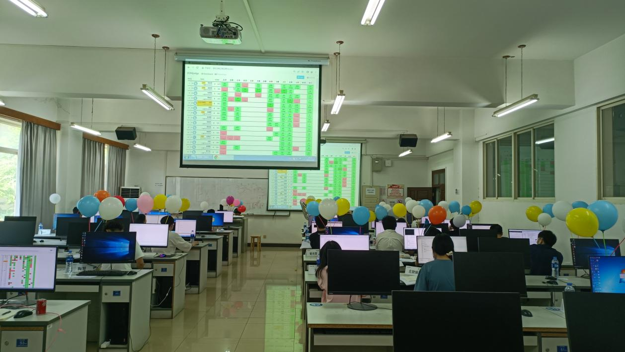 本次大赛运用线上线下相结合的方式,线下决赛由校内参赛选手经初赛选拔于5月29日在学校九栋教学楼机房进行,线上比赛在牛客竞赛上发布同步赛。本次决赛共14题,比赛时间5个小时,采取单人icpc赛制。每正确完成一道题将会在榜单上实时显示。