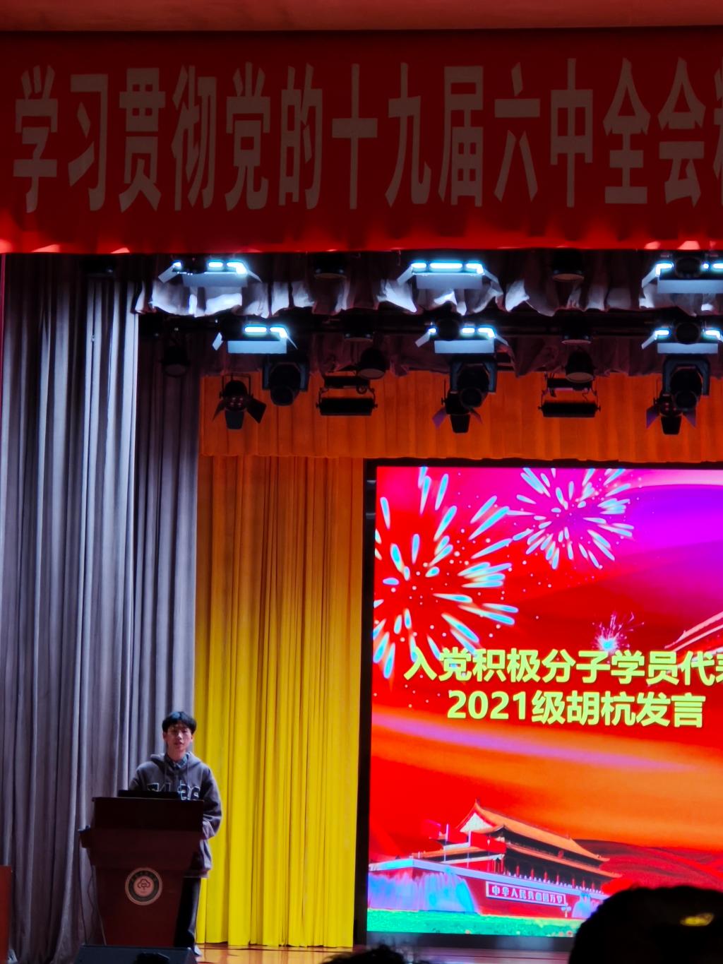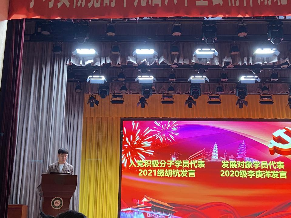 2021级自动化类专业学生胡杭、2020级计算机科学与技术专业学生李庚洋分别作为入党积极分子学员代表、发展对象学员代表发言。
