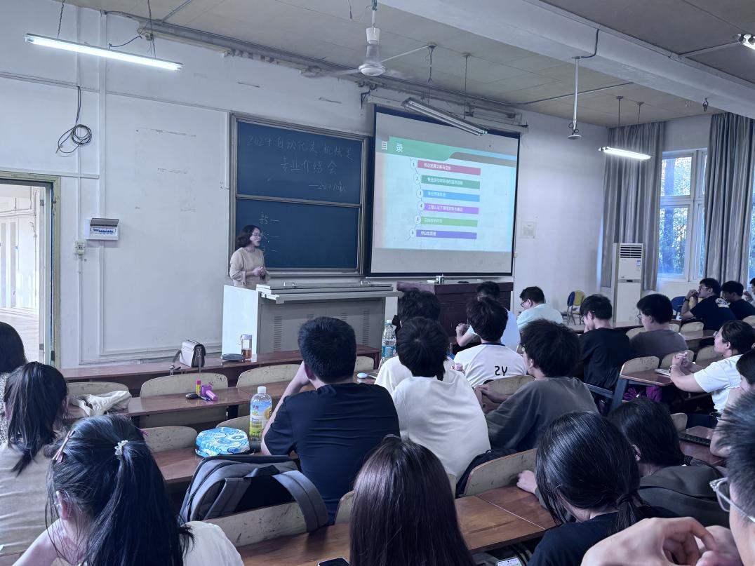 樊金荣老师引导同学们既要感受大学生活的美好,更要做好个人发展规划,推进知识向能力转变。她从自动化专业的课程体系架构、学科特色和培养目标三方面展开介绍,展示其交叉学科特色和多元课程内容,为学生提供了实用的专业选择建议。