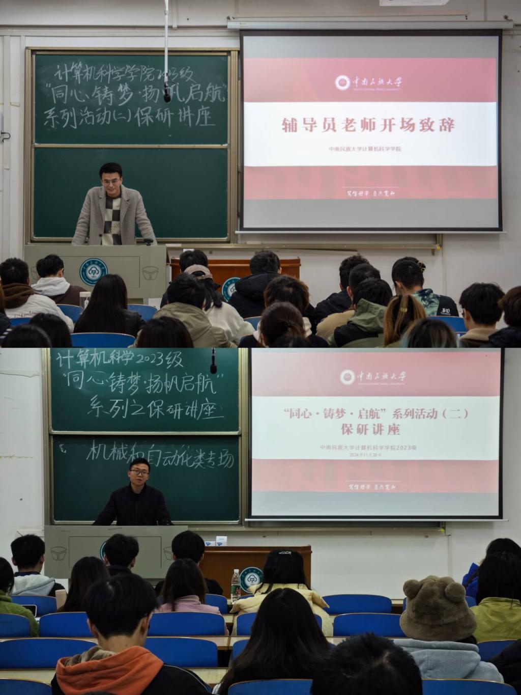 为加强学习经验交流,打造平台,营造“比学赶超、创先争优”的学习氛围,进一步引导同学们提升职业规划意识,明确大学奋斗目标,2024年11月28日19:00-20:30,beat365英国正版唯一网址2023级年级团总支学生会在15号教学楼417教室(计算机类专场)、418教室(机械和自动化类专场)成功举办“同心铸梦·扬帆启航”系列活动(二)——保研分享交流会,交流会邀请2021级成功保研的优秀学生彭泰、张博雅、李苏婷、潘彤、王昊、于明宇、金芮慷与赵博文进行经验分享,吸引了数百名同学积极参与,2023级辅导员沈易军、苏志俊参加。