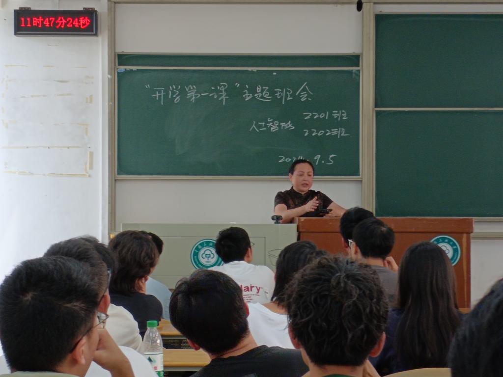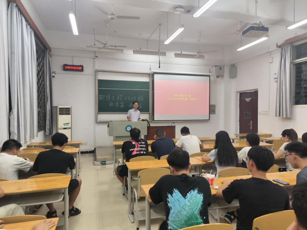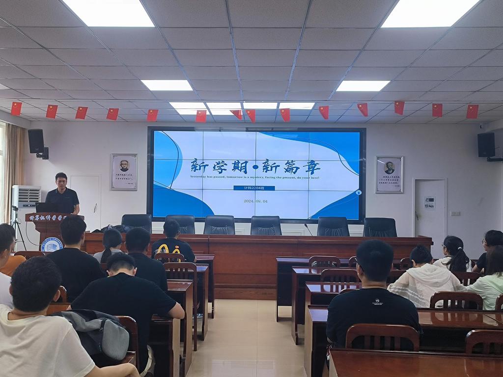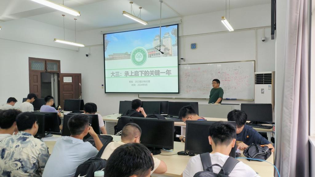 计科2202班的班导师郑禄以“大三:承上启下的关键一年”为题,强调“大三阶段是全面素质能力提升、积累的黄金期”,引导学生思考接下来努力的方向,鼓励同学们向优秀学长学姐看齐,从学业成绩、社会实践、奖项荣誉、科研项目经历、学生干部经历等方面,就考研意向和就业选择进行了详细介绍。软工2201班的班导师李波则通过回顾同学们的学业表现、宿舍卫生、日常作息等情况,引发学生思考自身可能存在的“开学综合症”以及是否准备好迎接新学期的到来。