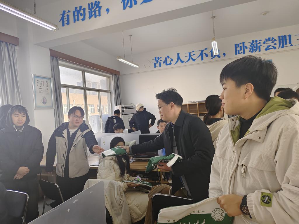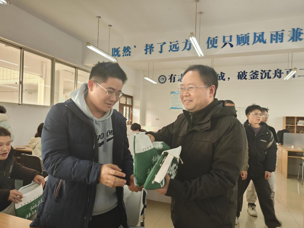 活动现场,气氛热烈而温馨。领导和老师们将精心准备的考研大礼包一一发放到每一位考研学子手中。这些大礼包中包含了各种实用的物品,为学子们的备考之路提供了物质支持。学院领导和老师们在发放礼包的过程中,与考研学子们亲切交流,询问他们的备考情况,鼓励他们要坚定信心、保持良好的心态,积极面对考研的挑战。大家表示,学院将始终是同学们的坚强后盾,会全力为大家提供支持和帮助。