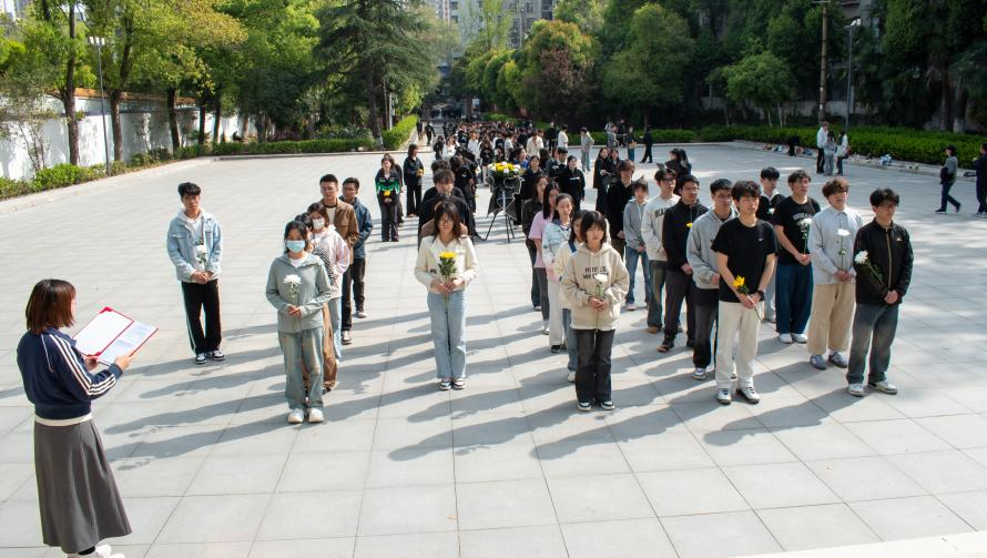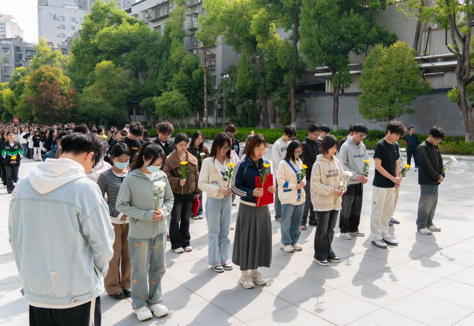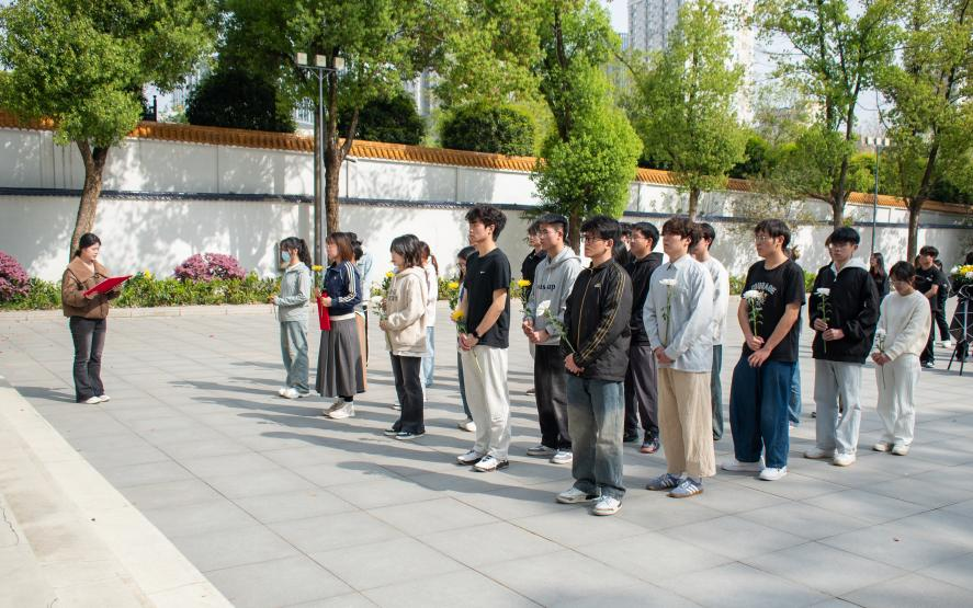 本次活动在庄严肃穆的氛围中拉开序幕。同学们整齐列队肃立于北伐战争纪念碑前,集体默哀一分钟。默哀毕,他们怀着崇敬的心情依次向革命先烈敬献鲜花。在巍峨的纪念碑下,同学们深切追思为民族解放事业英勇献身的革命先辈,表达对他们的无限哀思和崇高敬意。