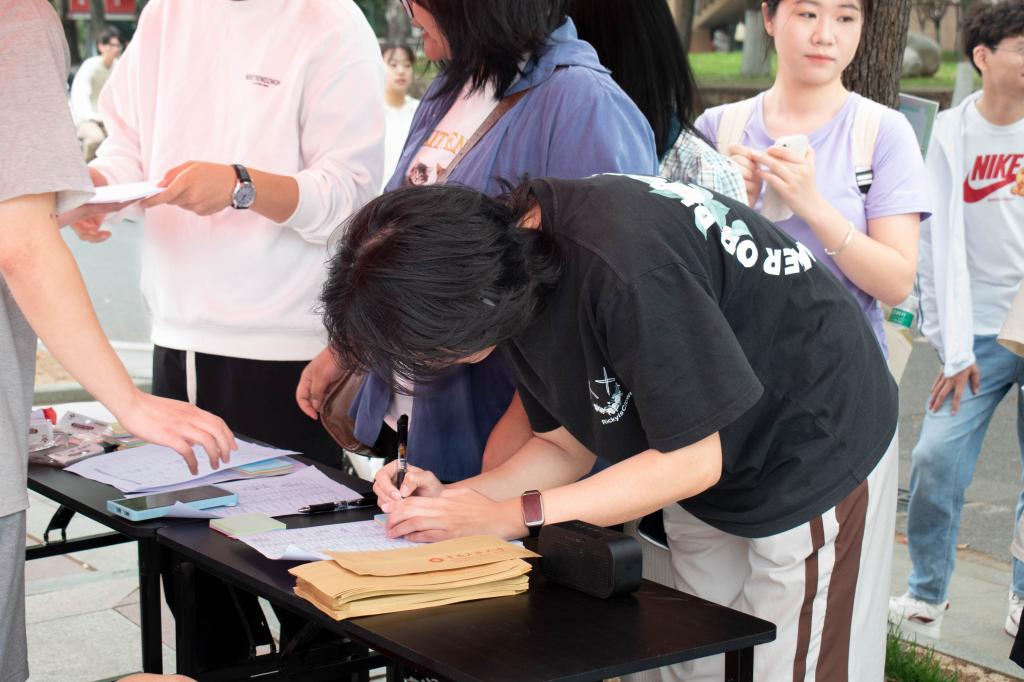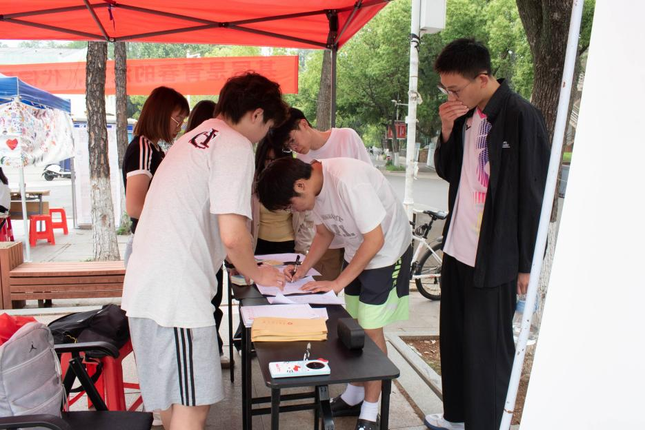 心理减压趣味运动会正式开始之前,在一、二食堂中间广场设有三个专区组成的暖场活动。“从前慢—信”、“你要的‘信’福—写给未来的自己”、“愿明天,带着我们的梦想,一同起航”三个活动很快的让学生们活跃起来。