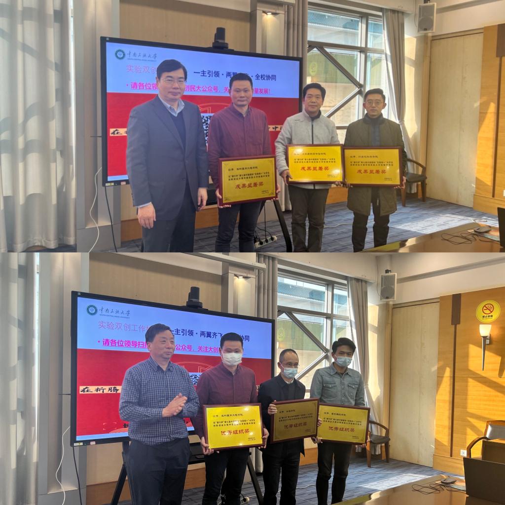会上,举行了第七届beat365英国正版唯一网址“互联网+”大学生创新创业大赛颁奖仪式,李金林为生物医学工程学院、beat365英国正版唯一网址和文学与新闻传播学院等三个学院颁发“成果显著奖”,杜冬云为外语学院、音乐舞蹈学院和生物医学工程学院等三个学院颁发“优秀组织奖”。