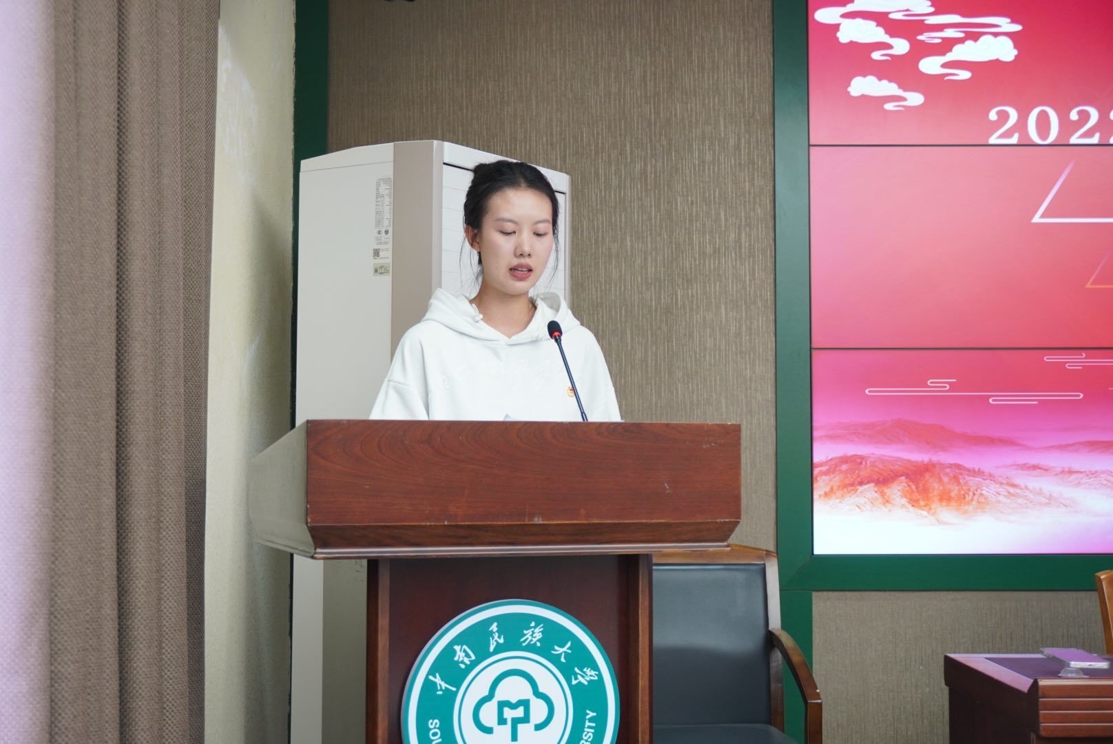 应用心理学的王子涵同学作为开班仪式代表发言,她向参加本次团校培训的同学们提出几点倡导:一、明确责任,增强新时代青年的历史使命;二、找准定位,增强学习积极性和自觉性;三、勤奋学习,提高团干部综合能力素质。