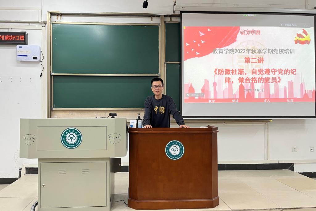 为提升党员思想觉悟,深入学习贯彻党的二十大精神,增强党组织的凝聚力和战斗力,教育学院于11月3日下午在15栋120教室举行了秋季学期党校培训班开班仪式,并开展了第一、二讲课程。教育学院党委书记周刚、党委副书记孙冰、分党校班主任王继发参加开班仪式。