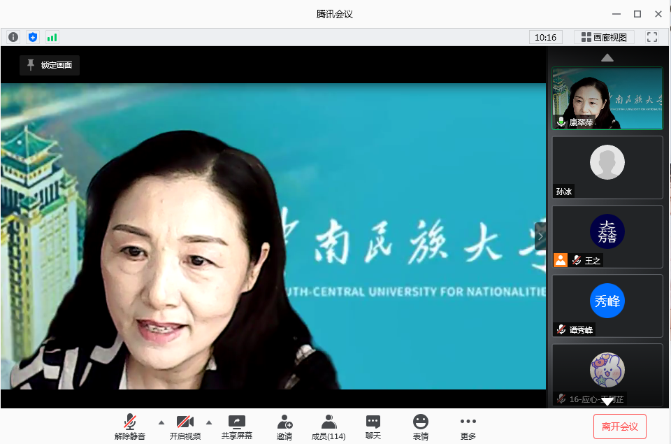 接着,教育学院康翠萍院长发表讲话。康院长提出,今年的毕业典礼对于毕业生来说意义特殊。处于疫情肆虐之时,过去的几个月经历对于每一个人来说非常珍贵。毕业生在这段艰难时期克服困难,顺利完成学业,度过疫情后即将踏上人生新征程。四年前踏入校园大门之时的畏惧、第一次进入专业课堂和科研项目时的笨拙、在某项学习任务中无知无畏犯下的错……这些都刻在老师的脑海中,也都将载入中南民大教育学院的史册。教学以明道,育人以达理,是教育学院的院训,教育之志在四方,学术之理在通达,康院长希望同学们坚守教育之道,把教育之志传递给每一个人,做一个实实在在对社会有贡献的人。无论同学们身处何方,教院永远都是家。