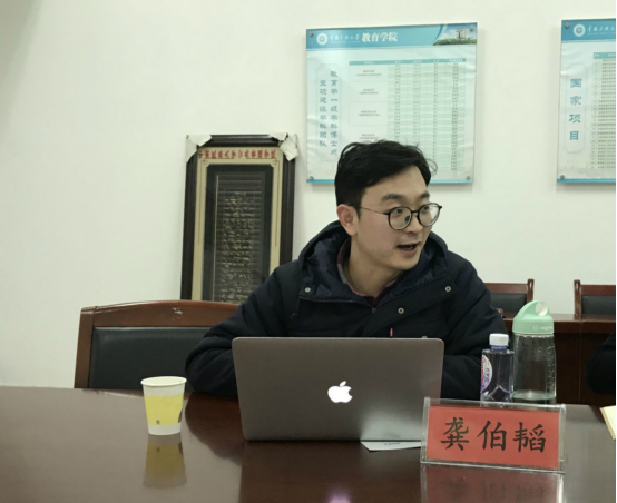 教育学院第二十期研究生“南湖书声”读书报告会于2021年4月1日晚在15-727举办。本次读书报告会特邀教育学院龚伯韬老师、作为点评专家,会议由博士生王之主持。2020级博士宁爽、2020级硕士谭蜜和李婷同学分别作读书分享,教育学原理专业全体研究生参会。