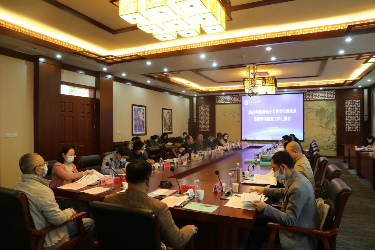 夏惠贤介绍了三位专家的相关情况,说明了此次教育硕士学位授权点质量专项巡查的目的和要求。教育学院院长、教育硕士专业学位授权点负责人田恩舜汇报了学校教育硕士研究生实践学工作。
