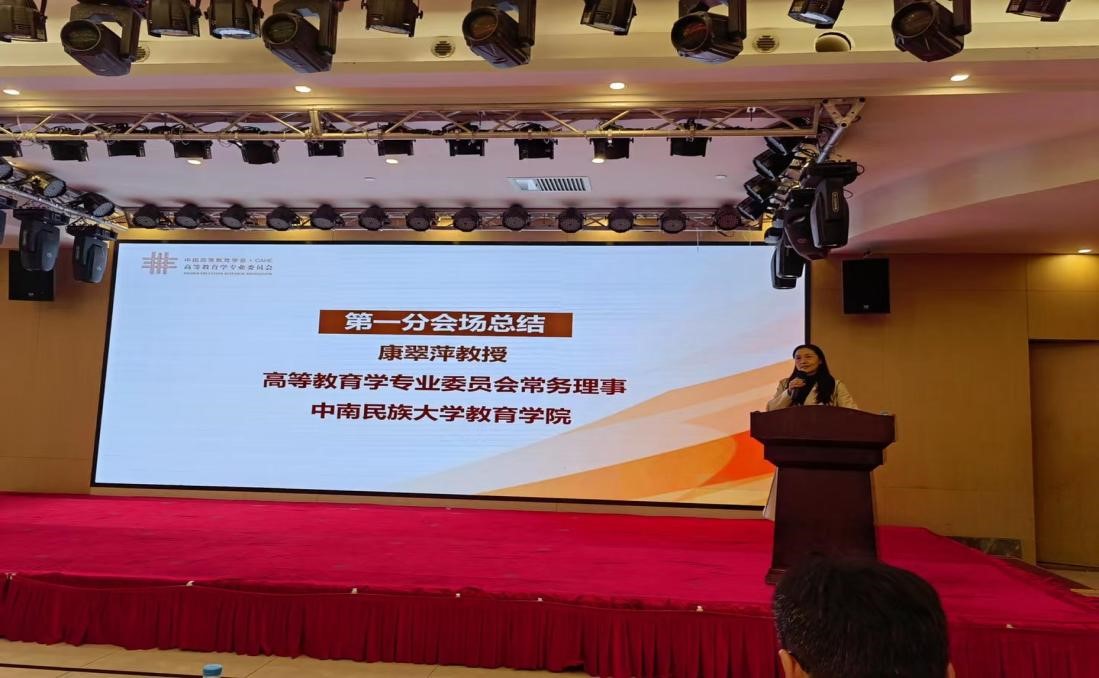 本次年会交流形式丰富多样,不仅设有分论坛,还开辟了博士生论坛和青年学者论坛专场学术报告。我院康翠萍教授受邀做分论坛主持和大会总结,她认为高等教育普及化从表层次看是一个“量”的概念,实际上具有一个内在的深层次“质”的规定性,“质”与“量”是一对辩证统一的哲学范畴,高等教育规模增长到一定程度,必须引起系统内部的“质”的突变,本土化的特征也会凸显出来。她以“多元”作为关键词进行了概括,线上线下的多元学术交流形式让教育在场的意蕴更广化,宏观微观嵌合的多元学术视野让理论碰撞更灵动鲜活;法、哲、教、理多元学术交流范式让学术气氛更生动活跃。在高质量发展背景下探究高等教育发展与改革不仅是中国特色社会主义理论的一种深刻的学术表达,更是与现实需求同频共振的探索行动。