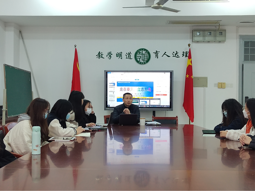 会议伊始,班长孔园园进行新学期主题发言。她以时令春天来比喻同学们的新学期,呼吁大家把握关键时节。班导师李永发表了题为“走在春天,立志为先”的讲话,呼吁本班同学依据自身情况适度立志,重在落实,根据开学第一课的要求,提醒同学们正确预防春季传染病,遵守疫情防控规范,谨防电信诈骗,重视国家安全,强调日常生活规范化,保障好身心健康。