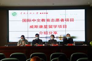3月19日,教育学院“国际中文教育志愿者和威斯康星留学项目宣讲和分享会”在15-741会议室举行,国际合作与交流处李楠老师、教育学院党委书记周刚、副书记孙冰、辅导员谭闺臣、毕业生施臣与学院本科生参加,会议由谭闺臣主持。
