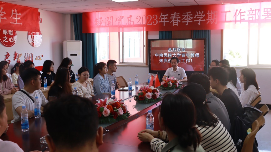 在安排好鄂州经开实验职业高中8位实习学生的各项工作后,实习队伍随即前往鄂东高级中学,参加鄂东高级中学的欢迎仪式。鄂东高级中学主要领导、职能部门领导、各年级主任出席欢迎仪式。鄂东高级中学领导在会上对实习工作做了具体安排。校方希望各位实习学生尽快适应教学工作与身份转换,施展专业才能,主动学习请教,提升各项教学技能。黄传慧教授要求实习同学做好教学工作日志、严格要求自己,服从学校管理,珍惜实习机会。