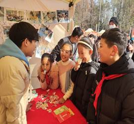 1月1日上午,在公益项目展示市集中,项目组成员们精心打造的“丝路悠扬,民族情长”主题展示区吸引了众多目光。该项目以赤壁羊楼洞青砖茶为独特切入点,带领青少年踏上重走万里茶道与丝绸之路的奇妙征程,展现各民族交流交往过程。为了让青少年们更深入地体验丝绸之路文化的魅力,项目组志愿者在展示区设置了一系列精彩的互动活动。从品茶领略丝路饮品韵味到折纸感受指尖文化魅力,然后通过回答“丝绸之路”相关知识来集章,充满趣味与挑战。