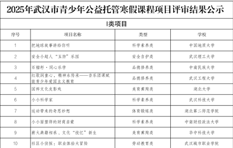 2025年武汉市青少年公益托管寒假课程项目立项公示