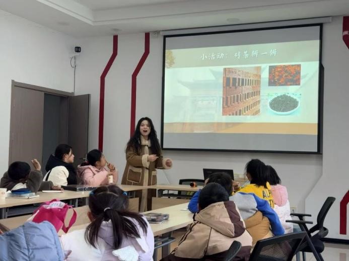 在蔡甸街道高湖青少年空间,志愿者用富有感染力和亲和力的语言,以青砖茶为主线,丝绸之路为暗线,带领学生跟随主人公小楼穿越时空,重走万里茶道与丝绸之路。通过“品味青砖茶”“猜猜我是谁”“你眼中的飞天神女”等生动有趣的互动活动,引导学生认识丝路的价值和意义,学习丝路沿途的文化知识,探索古代商贸的繁盛。