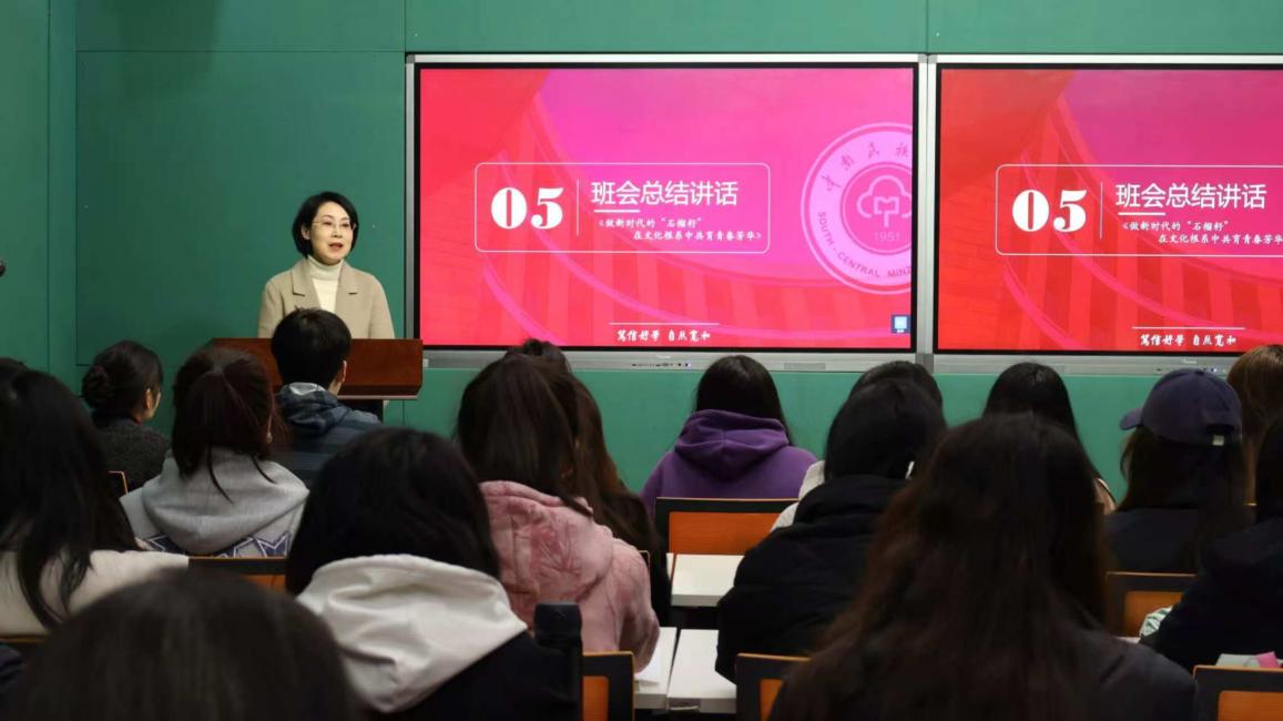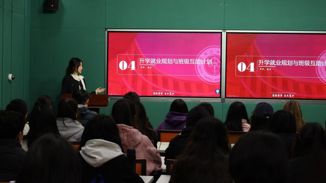 同学们在班会上分享了寒假托管班的实践成果和授课体会,展示了以“丝路悠扬,民族情长”为主题课程,并介绍了通过跨学科融合的课程设计,将民族团结教育与“五育并举“理念落到实处。同学们还围绕社会服务到专业能力的思考以及升学与就业展开了深入的交流分享,班级开展分层分类职业规划指导,通过社群打卡、经验互鉴等方式强化能力提升,明确各自的发展方向。