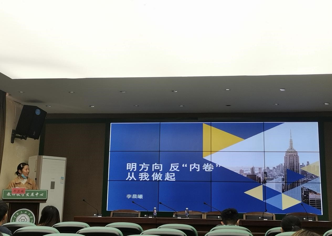 最后是李晨曦硕士以《明方向 反“内卷” 从我做起》为题,介绍了她对如今社会热点问题——“内卷”的理解和看法。她认为当代大学生“内卷”的原因主要是社会环境的变化、不良竞争和学生自身缺乏方向感等,并提出了明方向、反“躺平”的具体建议,呼吁大家明确方向和价值,才能够收获满满。