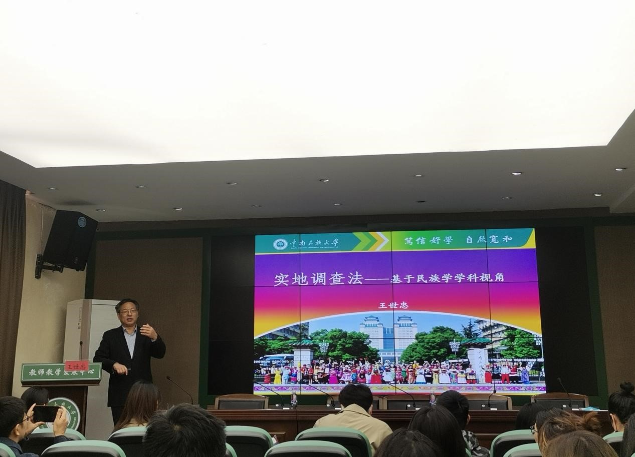 首先,博士生导师王世忠教授以《实地调查方法——基于民族学学科视角》为题进行分享。他从实地调查的方法意义、特点、类型、调查前的准备以及调查的具体方法等五个方面,系统讲述了如何科学地进行实地调查,他还着重强调“没有调查就没有发言权”“没有实地调查,就没有民族学”等观点。王世忠教授深入浅出的讲解,让在场的同学深切体会到实地调查法的意义和魅力。