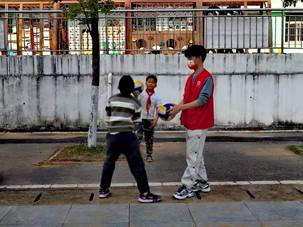 18日下午,志愿者们乘坐大巴车到达关山小学。在志愿者们的带领下,书法社团以《登鹳雀楼》为船,以墨香为桨渡过千古光阴;美术社团的一双双巧手用彩泥捏出想象中的“食物世界”;舞蹈社团伴随音乐,尽显灵动身姿;合唱社团用一首《北京东路的日子》告诉孩子们要敬惜时光、珍惜眼前人,歌声悠扬唱响校园;田径社团挥洒汗水;篮球社团在投篮比赛里收获满满喜悦;排球社团你来我往活力张扬……各社团所属志愿者课前精心准备、课上认真指导,活动开展得井然有序。活动过后,志愿者们认真填写反馈表,总结经验,发现并改正在课程设置和课堂教学中的不足,为下次活动做好准备。