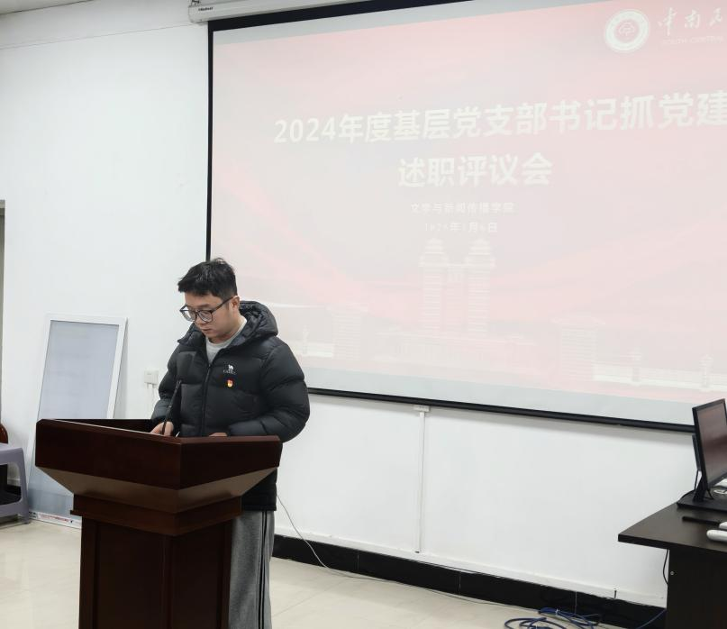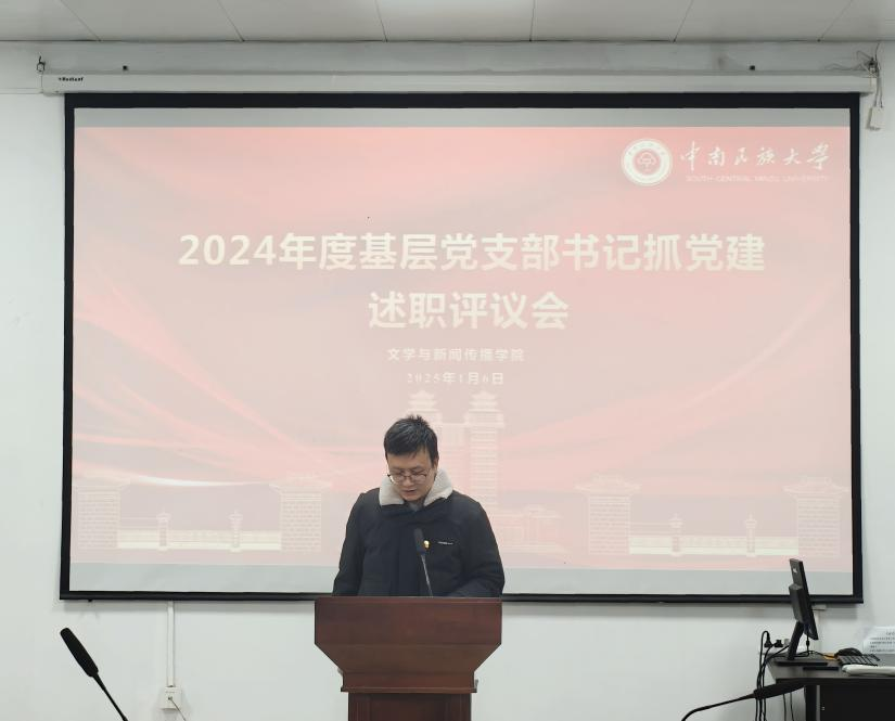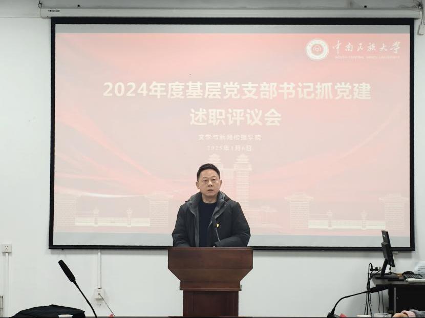 根据学校党委工作要求,2025年1月6日下午,学院召开2024年度基层党支部书记抓党建述职评议会,学校党建述职评议督导组成员庞建华、谢村,文学与新闻传播学院“两委”委员,学院各基层党支部书记,师生党员代表参加会议。会议由学院党委书记谢岚主持。