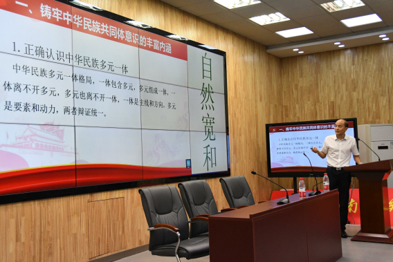 党课围绕铸牢中华民族共同体意识的丰富内涵、铸牢中华民族共同体意识在学科建设中的体现、铸牢中华民族共同体意识的专业实践三个方面展开,陶喜红强调,广大党员干部要坚持正确的中华民族历史观,正确认识“四个与共”,增强“五个认同”,正确把握“四个关系”,以铸牢中华民族共同体意识为主线,加强学科建设。