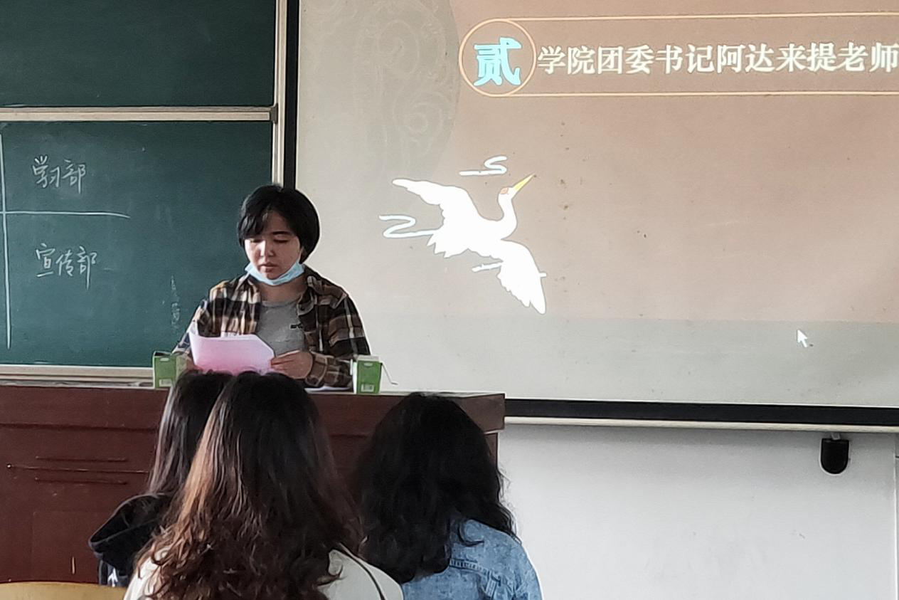 阿达来提老师致开幕词并预祝本次新生训练营取得圆满成功。她强调,新生训练营的同学们正处于尝试、突破、蜕变的新阶段,更应当勤奋学习、开拓创新、投身实践,进一步推动学院青年学生成长成才,开创学院团总支学生会工作新局面。我院第十三届学生会主席团成员刘彦宏详细介绍了第十三届学生会各部门的职能工作,李月玲具体阐释了新生训练营的管理办法和选拔机制。