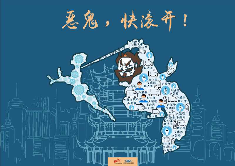 将奥特曼对怪兽的动作由“对峙”改为“打击”,突出“战胜病毒”的决心;将本来纯蓝的背景改为城市与黄鹤楼的组合,突出武汉主战场的地位;将翅膀上的伤痕和血迹去除,表示医护人员能守护得住;将“守”字从篆书改为人们更易看懂的隶书……两个作品从初稿到成品一共经历了20多天,文传学院祝翔老师作为指导老师,从图形表现、构图、色彩、广告语、画面背景、氛围营造等方面提了许多建议,并与学生一起不断完善,最终呈现出令人满意的作品。