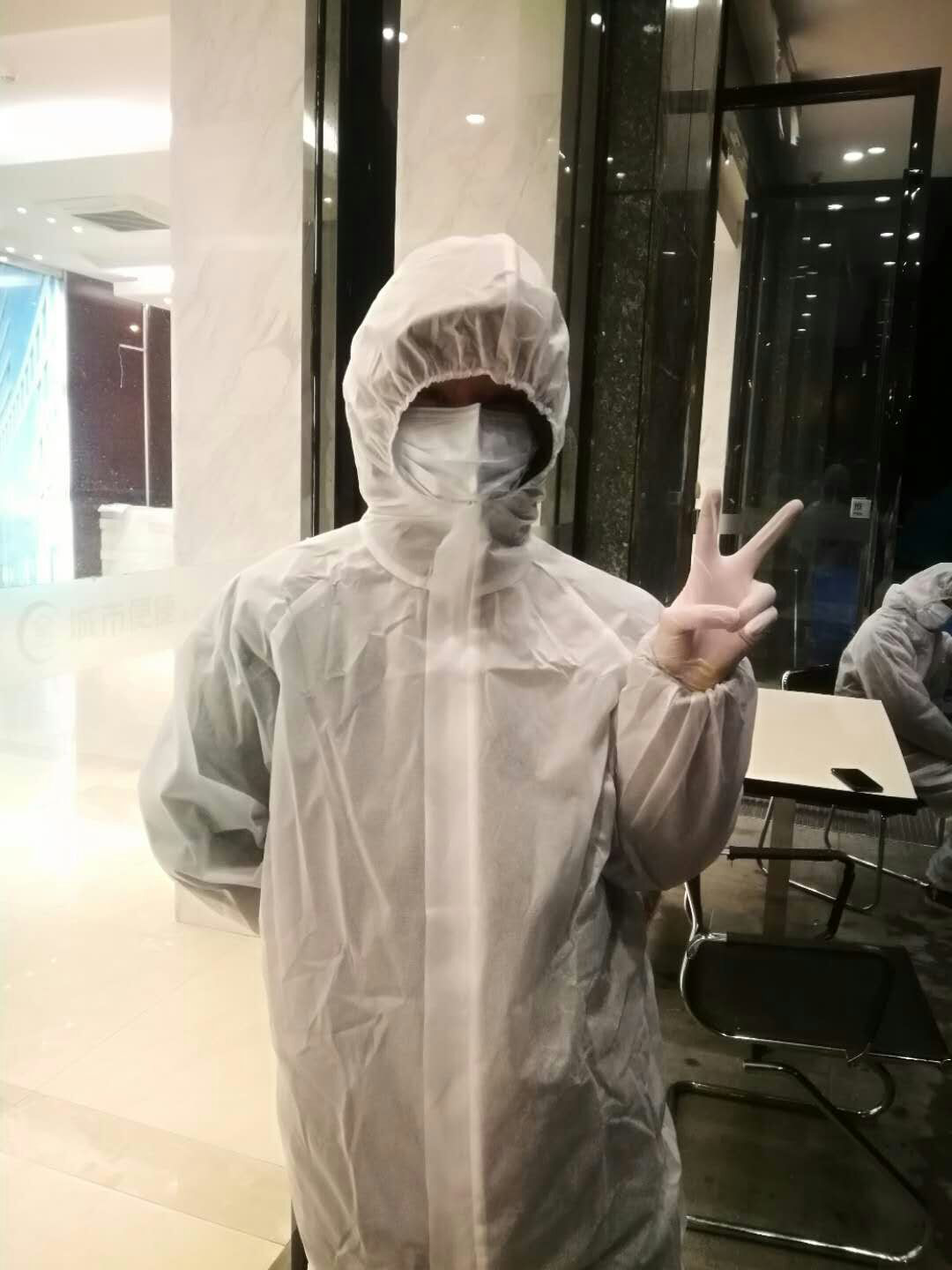 方鹏上的是晚班,晚上八点,方鹏在隔离酒店的工作开始。因为需要近距离接触被隔离人群,所以他必须得换上隔离衣,戴上护目镜、手套以及两层口罩。由于隔离衣的密闭性,方鹏每次完成一趟工作都会闷出一身汗,再加上戴着两层口罩呼吸不够顺畅,就连说话也显得有些困难。方鹏的主要工作内容是当有需要接受医学观察的人员送来时,将待观察人员领到指定房间,并提供相应帮助。除此之外,方鹏一行志愿者们还要负责医观人员的一日三餐,需要按时把饭菜送到医观人员的房间门口,并在早上六点和晚上六点为医观人员清理垃圾,同时给他们提供所需生活用品。