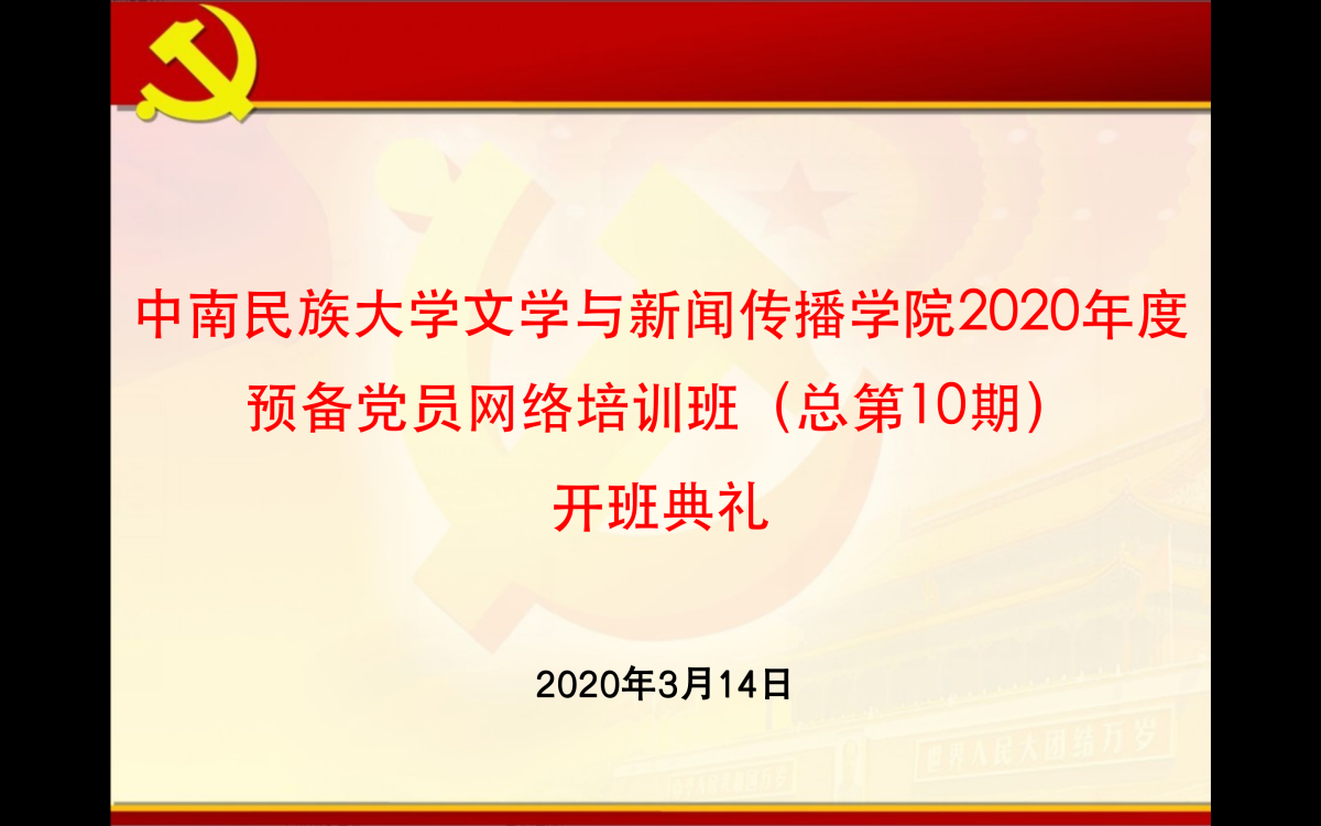 本站讯(通讯员 古昕)3月14日上午10时,beat365英国正版唯一网址文学与新闻传播学院召开2020年度预备党员网络培训班(总第10期)开班典礼。为贯彻疫情期间相关政策要求,此次开班典礼在腾讯会议网络平台进行。我院党委书记韩昕、党委副书记张文军、专职组织员伍岚、团委书记、培训班带班老师阿达来提以及本期全体预备党员参与了这次开班典礼。