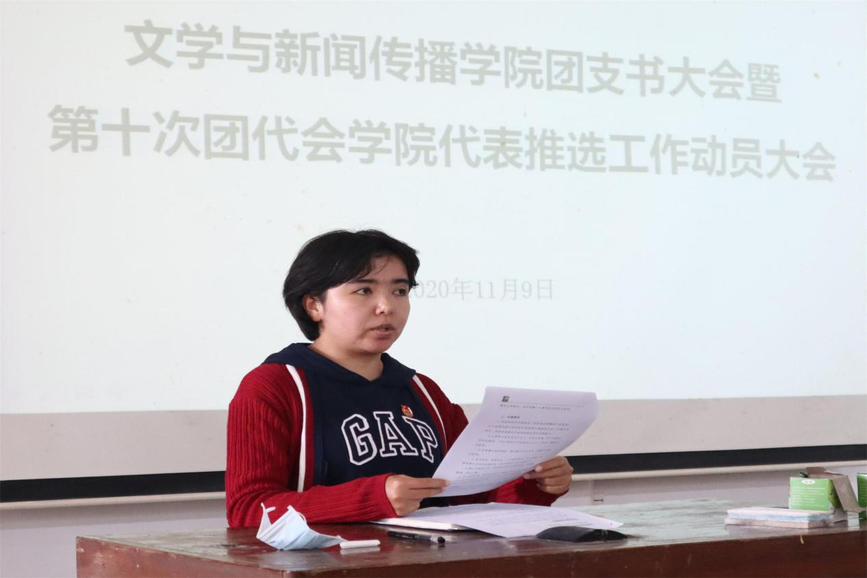 会上,阿达来提老师系统地阐述了开展团代会的重要意义,明确了本次团员代表选举工作的总体要求、选拔流程和方式方法,就开展好团代会学院代表推选工作提出具体要求:一是与会人员要认真学习相关文件,传达文件精神,提高思想认识,承担团员责任,履行团员义务,各团支部书记要深刻认识团员代表推选工作的重要意义,提高政治站位和政治觉悟,增强做好团代会学院代表推选工作的政治自觉、思想自觉和行动自觉;二是明确推选程序,聚焦重点工作任务,以本次团代会选举为契机,引导支部内部团员青年以饱满的工作热情投身团工作,提升团员凝聚力,筑牢团的生命线,提升团的战斗力,确保团员代表选举过程公开、公正、透明;三是要高度重视此次团代会,要做到代表选举依章依规,工作推进按时按质,程序完备善始善终。