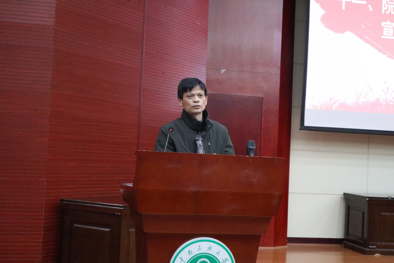 本站讯(通讯员熊英摄影袁美)12月2日上午12点30分,我院第七届基层团校结业典礼在二号楼模拟法庭顺利举行。本科团总支书记黄译莹、本科团总支副书记刘斯珺、本科团总支办公室主任邹慧瑜以及我院2020级全体团学工作者参加典礼,我院党委副书记张文军、团委书记阿达来提、团委副书记卡迪尔旦、团委副书记邓张明月出席。新闻传播学类2008团支部王晓庆同学担任主持。