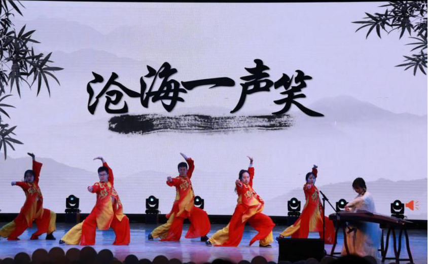 与此同时,各具特色的舞台剧和歌舞串烧也为本次晚会增光添彩。融合唐诗宋词清戏曲元素的《歌舞中国》带我们漫步于传统文化的世界;包含朝鲜族、壮族、藏族等多民族舞蹈和特色影子戏的《民族印象录》让我们领略多民族的艺术文化特色;中文四班和武术协会部分成员合作完成的《沧海一声笑》则让同学们感受到古筝的婉转悠扬、朗诵的铿锵有力、武术舞蹈的刚柔并济,赢得了在座同学们的一致好评。