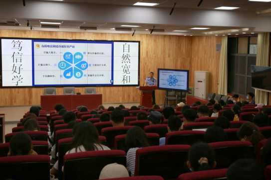近日电信网络诈骗案情频发,大学生作为电信网络诈骗的主要受害群体,加强防范宣传刻不容缓。先前我院各年级已召开年级大会和“反诈”主题班会紧急宣传反诈骗相关知识,并开展了一系列诸如成立“反诈”宣讲团宣讲、督促所有学生下载国家反诈中心APP、关注反诈公众号和小程序、组织全体学生观看反诈骗电影、课间播放反诈宣传小视频等活动。为保持反诈宣传常态化,我院召开今日的专题讲座,继续加深同学们对电信网络诈骗的了解,进一步加强同学们的安全防范意识。