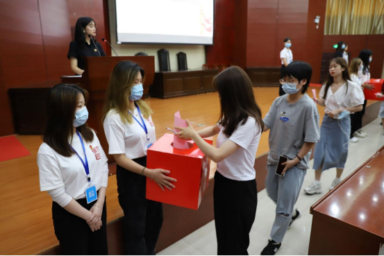 随后,第十四届团总支书记处与学生会主席团候选人依次上台发表竞选演讲,代表们在监票员的监督与工作人员的引导下投出公正的一票。团委书记阿达来提与团委副书记邓张明月分别为我院第十三届本科团总支书记处书记、学生会主席团成员及各部门部长颁发聘书。
