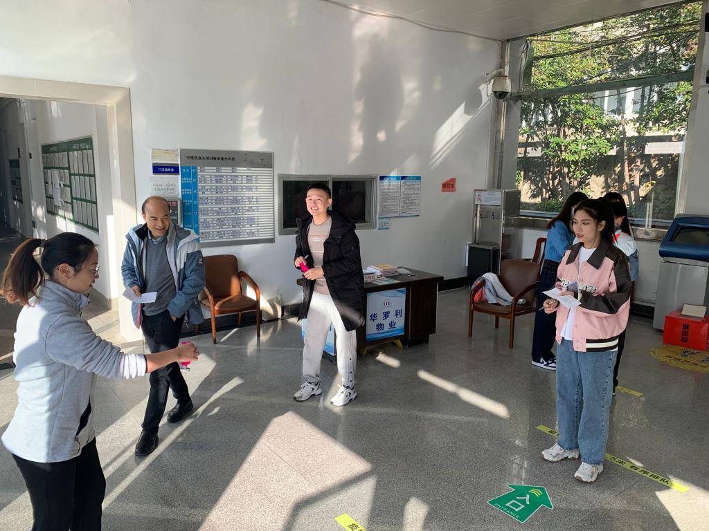 首先,朱晶晶老师为每位参赛教师发放参赛卡,教师们凭借参赛卡参与对应活动项目,每通过一个项目,记录员便会在参赛卡上登记成绩。活动大厅欢声笑语,人来人往,只见教师们手拿飞镖,眼睛瞄准,挥手一扔,动作一气呵成。旁边是踢毽球项目,教师们都脱掉外套,轻装上阵,灵活的手脚让教师们获得了不错的成绩。