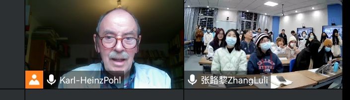 本站讯(通讯员祝雅屏 周言)应我院邀请,11月22日下午,德国著名汉学家、美学家卜松山教授走进《跨文化传播学》本科生课堂,通过线上会议展开了一堂主题为“跨文化对话的方法论反思”的随堂讲座。在授课老师张路黎的组织下,同学们前往10号楼121智慧教室与卜松山教授进行远程互动。