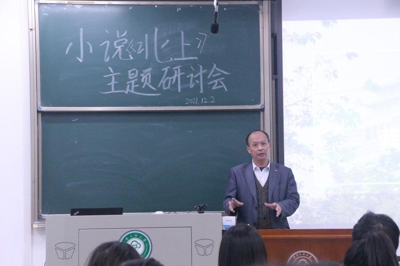 本站讯(通讯员刘芊芊 摄影刘芊芊)为促进学生将文学理论知识与作品鉴赏实践有机结合、融会贯通,12月2日晚18:30,第十届茅盾文学奖获奖作品《北上》学术研讨会在15栋教学楼119教室隆重举行。本次研讨会由我院2020级汉语言文学专业举办,龚举善教授亲临指导,特邀黄云霞老师为嘉宾,此外,文艺学博硕士生代表王鹏、李慧、徐初彤出席本次研讨会。