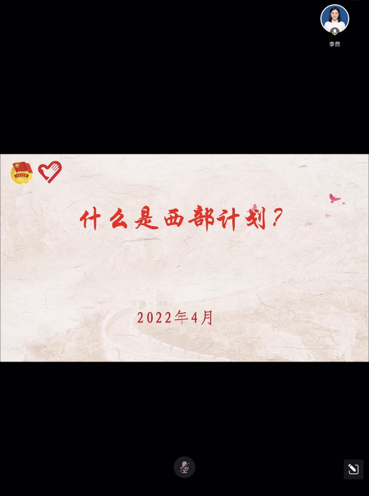 本站讯(通讯员 秦琪惠)“到西部去,到基层去,到祖国最需要的地方去。”4月14日18点,我院于腾讯会议平台线上举行了大学生志愿服务西部计划宣讲会,邀请了校团委李然老师主讲,会议由2018级辅导员阿达来提老师主持。
