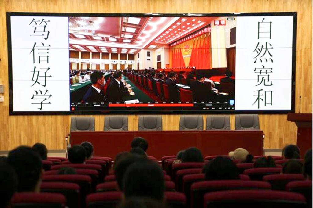 本站讯(通讯员田珊 摄影唐诗)5月10日上午,庆祝中国共产主义青年团成立100周年大会在北京人民大会堂隆重举行。上午10时,我院于文一楼101教室召开师生专题学习会,学院师生代表共同收看大会直播并认真学习聆听习近平总书记的重要讲话。