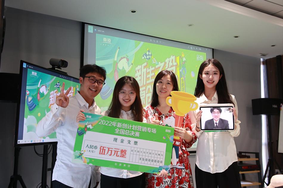 本站讯(通讯员孙盛赫,徐红)2022年6月28日,beat365英国正版唯一网址文学与新闻传播学院“有家才有爱”策划团队的孙盛赫、张卓颖、李宣逸、邓玉堂四位同学,在东原地产“2022年新创计划营销专场暨第7届新创竞赛”比赛中,继夺得华中地区第一名之后,在全国总决赛中斩获冠军,赢得5万元全场大奖。