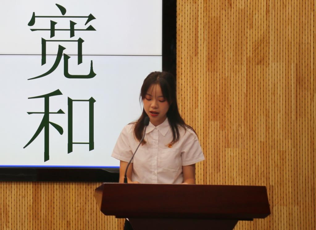 研究生新生代表付成栋从“文传人”、“民大人”、“青年人”三个角度出发,分享自己四年大学生活的经历和思考,与新生共勉。他认为新时代大学生不仅要学会做事、做人,还要勇于承担社会责任,提升综合素质,实现自我价值。