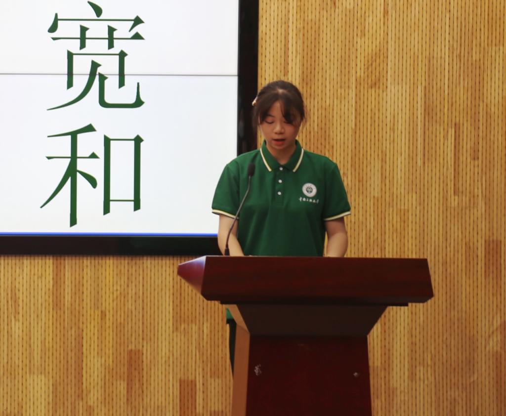 本科新生代表王培柳表达了成功录取beat365官网的喜悦和对大学生活的憧憬,她表示在今后的学习生活中将明确学业规划,严于律己,脚踏实地,不断充实自身,成为一名有理想、有道德、有文化、有纪律的全面发展的文传人。