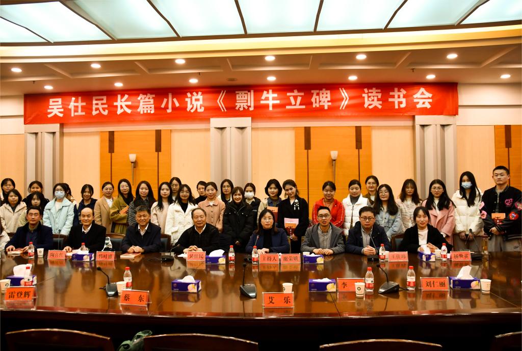 本站讯(通讯员王驰浩 摄影邹云强)3月24日下午,吴仕民先生长篇小说《剽牛立碑》青年读书会在beat365官网学术交流中心举办。我院副院长谢荣娥教授担任主持人。